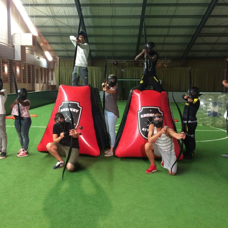 Archery Attack is de nieuwste teamsport in Nederland. Gewapend met een handboog en speciale rubber-pijlen (pijlen met een zachte rubberen ‘punt’) ga je in twee teams de strijd met elkaar aan. Archery Attack is een combinatie van boogschieten, paintball en trefbal. Omdat de pijlen een zachte rubberen ‘punt’ hebben is Archery Tag heel veilig, maar wat het zo spannend maakt is de snelheid waarmee er geschoten kan worden. Het verstoppen en ontwijken van pijlen die van alle kanten om je heen vliegen is super gaaf! Voordat de spellen beginnen krijg je eerst uitleg over het boogschieten en de spelvarianten door één van onze ervaren werknemers. Wist jij dat ArcheryAttack ook te combineren is met allerlei andere activiteiten?