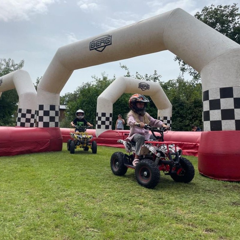 Quad rijden voor kids Zoek jij vermaak voor kinderen voor jouw event? Dan heb je met de kinder-quads een echte eye-catcher. Met deze elektrische kinderquads van BubbelBal wordt het ongetwijfeld een avontuurlijke dag! Onze quads zijn geschikt voor kinderen van 5 tot 12 jaar. Ouders kunnen gerust zijn: doordat de quads elektrisch zijn aangedreven, maken ze geen lawaai en geven ze geen vervuiling. Daarbij krijgen de kinderen voor de start een heldere uitleg, dragen ze een helm en handschoenen en kunnen ze met de quads niet buiten het terrein komen door de omheining van de racebaan, zoals op de foto te zien is! Tip: ook erg leuk voor kinderfeestjes op eigen terrein! Milieuvriendelijk en veilig Onze quads worden op locatie geleverd en kunnen gemakkelijk worden gebruikt in bijvoorbeeld een weiland of op een pleintje. Ze zijn speciaal ontworpen met het oog op veiligheid en plezier. Met 3 verschillende snelheidsniveaus kunnen de quads aangepast worden aan de leeftijd van de kinderen. Zo zijn de quads veilig voor elke leeftijd. Bovendien zijn ze milieuvriendelijk en stoten ze geen schadelijke gassen uit. Ook leuk om dit te combineren met meerdere activiteiten uit ons assortiment!